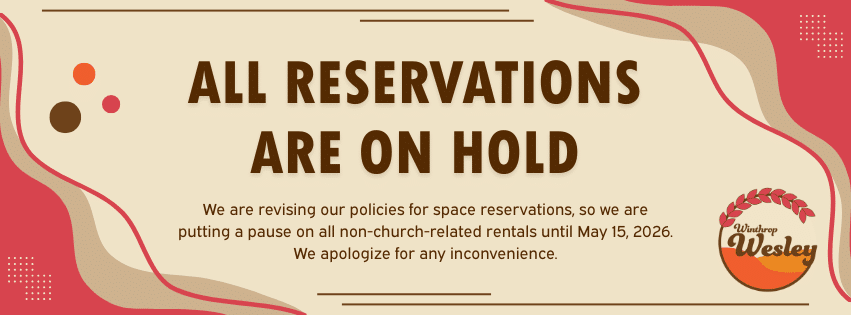 If you are a pastor or member of a United Methodist Church who would like to use the Winthrop Wesley on behalf of their church, please use THIS form. UMC groups may use our space free of charge, but may be charged a security deposit to be refunded after the event.